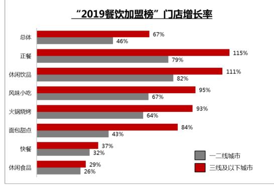 饮品行业作为餐饮加盟市场第二大赛道,在一二线城市中饮品加盟门店增长最高达82%;三线及以下城市门店增长率高达111%,远高于餐饮市场总体增长速度。