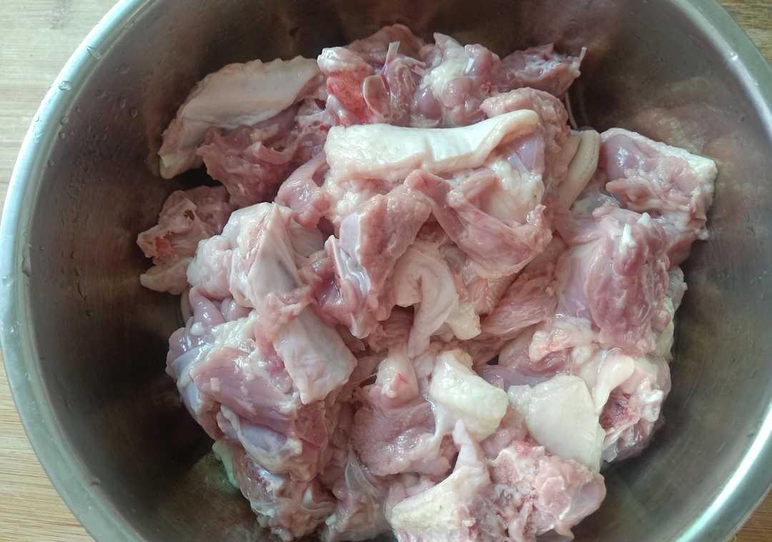 第一步:鸭肉清洗干净,再放水里泡一会,捞出来放在锅里,加适量的水、生姜、料酒去腥大火煮开,焯水后再清洗一遍,沥干水分装碗里。