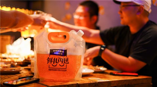 鉴于零售化和场景化成为招商的重要趋势,消费者对啤酒的饮用场景不断增多,堂食注重饮用场景的氛围环境,在家小酌希望精酿啤酒能提供外带、外卖服务。于是,优布劳首创精酿啤酒屋新零售品牌——鲜扎闪送门店——作为一个财富复制密码,链接不同的精酿啤酒消费场景,通过堂食+线上下单,线下配送,半小时可喝上新鲜的精酿啤酒,扩大了门店经营的时间和空间半径,多渠道增加门店收入。